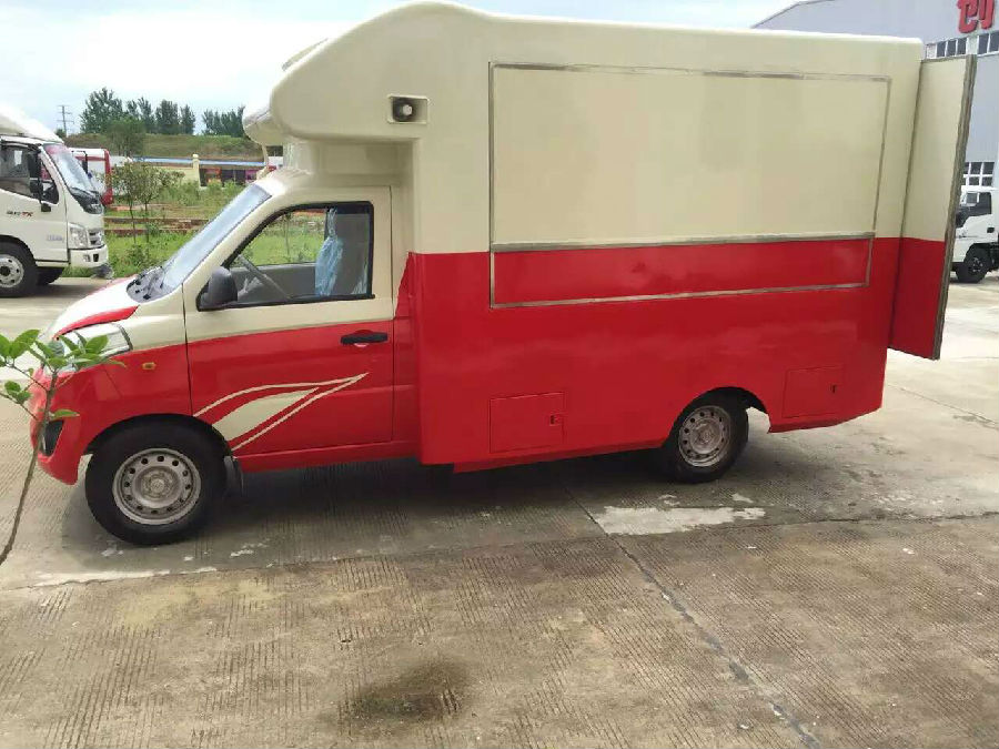 1,貨箱頂部封閉,不可開啟。可選裝逃生窗,不同前額頭造型。2,廂體后門上翻,選裝側(cè)開門,對開門;側(cè)板可上翻,可根據(jù)客戶需求選擇在車身兩側(cè)任意一面開啟售賣窗口;廂體下欄板在售貨作業(yè)時(shí)可展開平放以擴(kuò)展貨臺面積。側(cè)板和后門均可選裝燈箱或LED屏,外觀顏色可選。3,側(cè),后防護(hù)為裙板結(jié)構(gòu)與車廂連為一體,后部下沿離地高450mm。4,隨底盤選裝駕駛室。