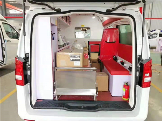 該車配備醫(yī)療器械柜,擔(dān)架,特種車輛標(biāo)志燈及警報器等救護(hù)專用裝置;帶OBD;ABS廠家:博世汽車部件(蘇州)有限公司,ABS型號:ESP9;發(fā)動機(jī)最大凈功率為155kW;可選裝高頂車身,隨原車選裝天窗,帶行李架,前格柵鍍鉻條和排氣扇