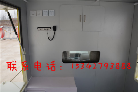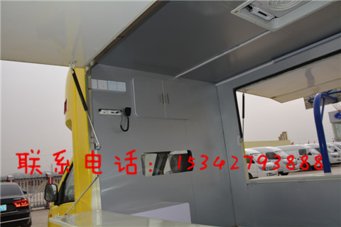 車廂內(nèi)部?jī)蓚?cè)裝有折疊式吧臺(tái)前部頂端為雙開(kāi)門儲(chǔ)物柜。